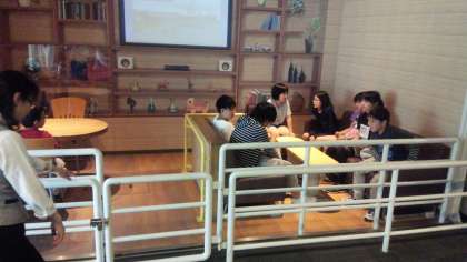 震災記念館に着きました。最初に地震を体験された副館長さんの話を,みんな真剣に話をききました。阪神淡路大震災と東日本大震災を体験するコーナーを全員が体験しました。