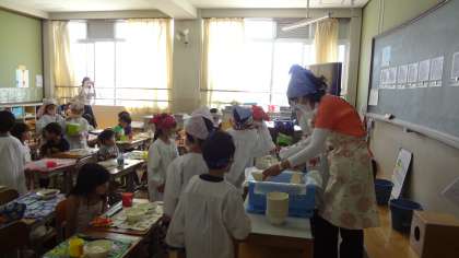 今日,新一年生の保護者対象に給食試食会がありました。今日のメニューは麦ごはん,牛乳,さばのしょうが煮,鶏肉と野菜の煮つけでした。栄養教諭からは学校給食や食育の話がありました。1年生が給食当番をして配膳をしている様子や食べている様子を見ていただき,実際に試食をしていただきました。「メニューがよく考えれられていて,手をかけて作っていただいていることに驚きました」「家でもおはしの持ち方,魚の食べ方を教えようと思いました」「感謝していただくように伝えたいと思います」などの感想が寄せられました。