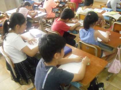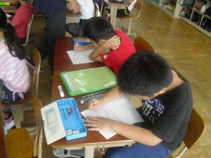 7月1日は,朱二検定の日です。国語と算数の基本的な力がついているかを確かめ,合格するまで取り組みます。各クラス,全員満点合格を目指して,黙々と取り組んでいました。