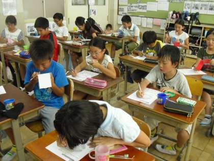 「歯を大切にしよう」というテーマで,学習をしました。カラーテスターを使って歯の汚れをチェックしました。普段から,上手な歯磨きの仕方を心がけてほしいです。