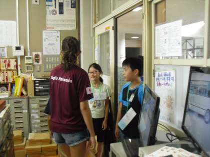 簡単な英語を使って学校案内を行いました。