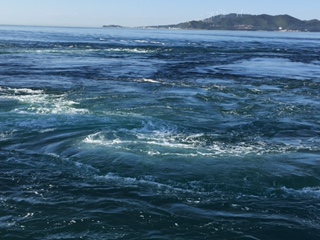 渦潮発見。「うわぁ、来た!」「ダイナミックやなあ!」