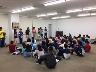今日の振り返りをしました。五分前行動を心がけたいこと,お金の管理をしっかりするこ,マナーを守ることなどをグループで話し合い明日に生かそうと確認し合いました。