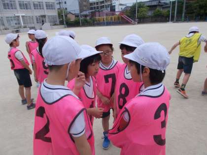 体育の授業で,リレーの学習が始まりました!リレーの学習では,バトンの渡し方や,リードの仕方,バトンゾーンのことなどを学習しました。チームごとに走順を決め,作戦を考えました。これからチームで作戦を工夫しながら,リレーの学習を楽しみたいと思います。