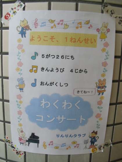 コンサートまでに,みんなに楽しんでもらおうと一生懸命練習しました。1年生だけでなく,子どもたち,保護者の方,地域の方々,たくさんの方のご来場をお待ちしています。どうぞよろしくお願いします。