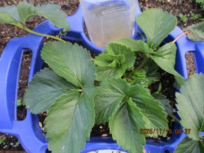 自分の植木鉢に植えているイチゴの葉っぱが中心から増えてきています。また、教室の南側でヒアシンスの球根を水栽培しています。日中はぽかぽかと暖かく、根をぐんぐん伸ばしています。