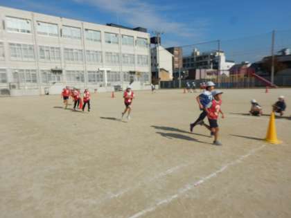 12月1日(月)の体育では、学年で5分間走のタイムを取り合いました。ジョギングタイムで走った後でしたが、子どもたちは自分のペースを考えながら走っていました。以前より、たくさん走る距離が伸びた子が多く、とても喜んでいる様子でした。3日(水)の本番に向けて体調を整え、自己ベストを更新できるようにがんばってほしいです。