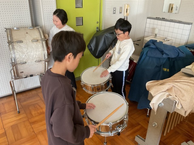 理科の「音のせいしつ」では、楽器や身の回りのものを使って音を出してみました。普段聞きなれている音でも「どんな音か」に着目して聞いてみると新しい発見がたくさんありました。「ピアノは低い音ほどよく響く」「鉄琴は高い音ほど響く」「小太鼓は大太鼓よりも響かない」などいろいろなことに気がつき、授業で調べた以外のものはどのような音がするのかを調べてみたいと意欲を高めていました。