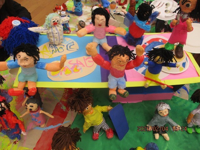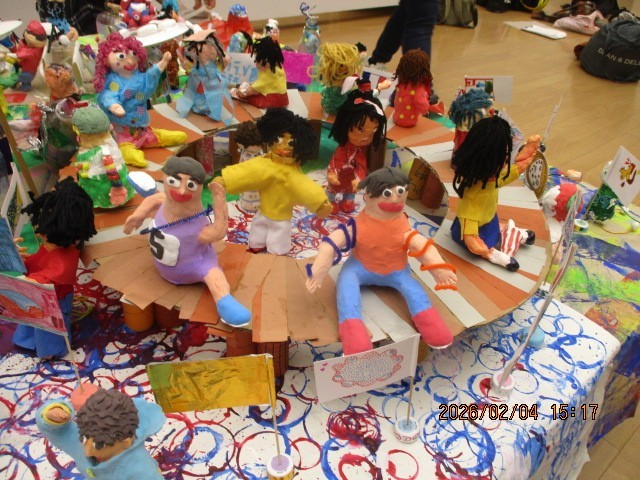 2月5日(木)から8日(日)まで京都市美術館別館で『小さな巨匠展』が開催されます。中京支部のテーマは『中京ばんぱく!~みんなでつながろう~』です。みんなでつくったゲートや大屋根リング、未来の乗り物・建物、ミャクミャクなどが展示されています。その中に楽しんでいる自分(立体作品)がいます。また、お気に入りの1枚(平面作品)が貼られています。ぜひ足をお運びいただき、探してみてください。