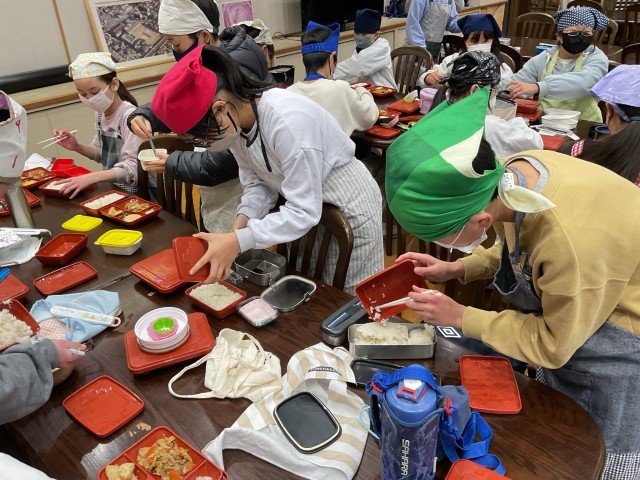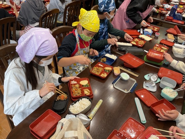 詰め替え体験の後、各教室で試食し、おかずの多さに驚いていました。