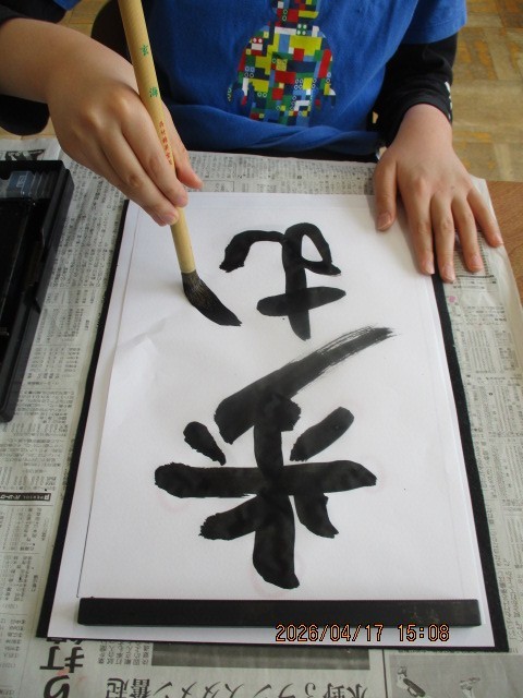 新しい学年になって、はじめての毛筆でした。姿勢や用具の持ち方を確認して、運筆練習をしました。また、文字の大きさと配列に気を付けて、『歩む』を練習しました。一歩ずつ自分の歩みを大切にしていきましょう。