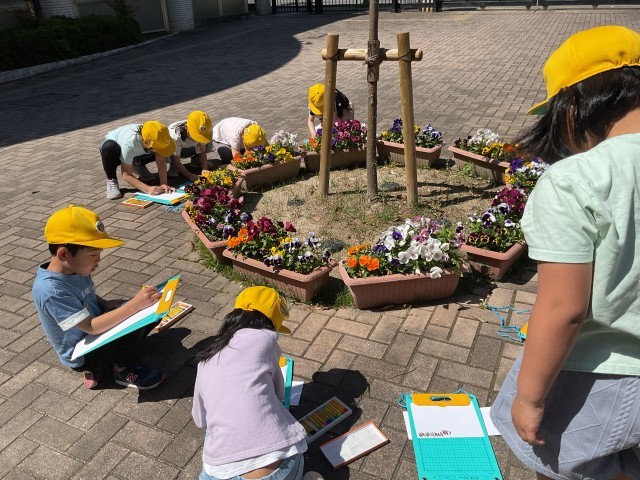 図画工作の時間に春だなと思うものを探してスケッチをしました。