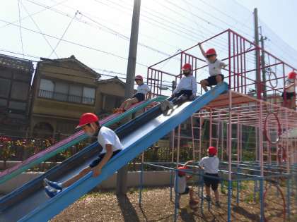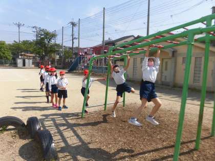 三点支持を意識して,安全に気をつけて遊具を使用していけるように支援していきます。