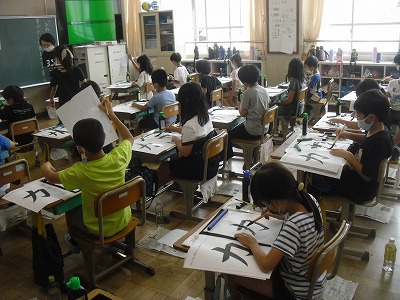 書写の時間に,「力」の字を毛筆で書きました。「おれ」や「はね」の書き方に気をつけて書き,今回は初めて自分の名前を小筆で書きました。小筆で自分の名前を書く難しさを感じながらも,書き切ると達成感のある表情が,教室中で見られました。