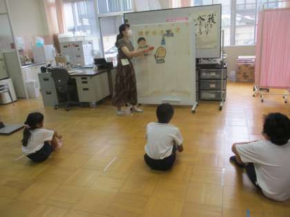 今日は身体測定がありました。測定をする前に,養護の新宮先生から「けがの手当て」についての話がありました。すりきずができた時は,流水でしっかり洗い流すことが大切だと教わりました。みんな真剣に話を聞いていました。