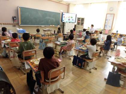 教室では,なごみ献立を紹介する動画を視聴しています。
