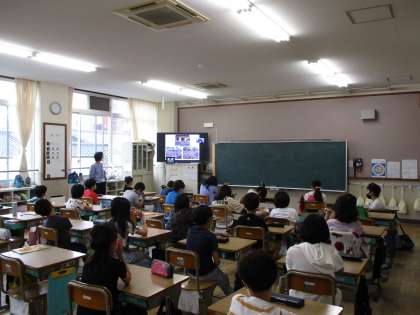 朝会のあとのくすのき集会では,各学年が考えた「人権についての行動目標」をオンラインで発表し合いました。