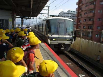ホームや電車の中では静かにしている姿がとても素晴らしかったです。水族館前につくにつれて,わくわくが強まってきているようでした。