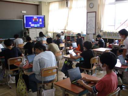 昨年度から,子どもたちは1人1台「GIGA端末学習用コンピュータ」を使って学習を進めています。そこで,今年度からは,朱三校独自の取組として,毎週金曜日(13:40〜14:10)に30分間の特設時間「GIGAタイム」を設定し,取組を進めていきます。