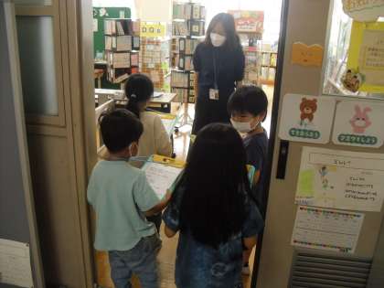 生活科「なかよしいっぱいだいさくせん」の学習で,学校のいろいろな先生へインタビューをしに行きました。事前に聞きたいことをいくつか書いておき,それをたくさん練習して本番に臨みました。知りたかったことを聞けて満足そうな子や,「もっと聞きたいことができた!」という子どももいました。今後は,インタビューしたことをまとめていきます。