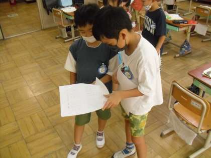 1日(木)の授業参観でご覧いただいた国語科「たのしいな ことばあそび」の学習で作った問題を、今日の国語の学習で出し合いました。