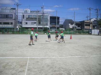 チームに分かれて作戦を考え、どうすれば多く点数が入るのかを考えたり、みんなで守る方法を考えたりしています。