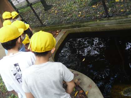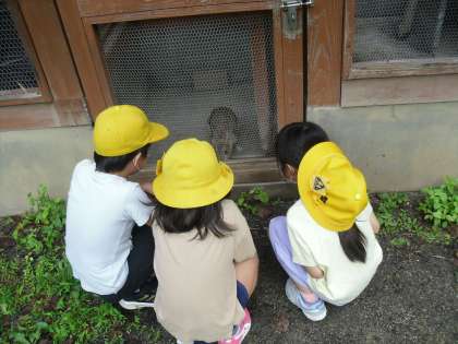 生活科「いきものとなかよし」の学習では、ウサギや亀に親しむ活動をします。今日は、どうぶつ村に行って、ウサギや亀の観察をしました。「亀の模様が違う。」「うさぎの前足に爪がある。」ということに気づくことができました。