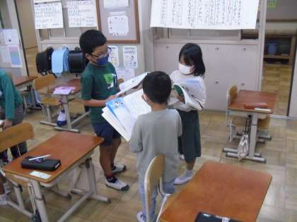 国語科「くじらぐも」の学習では、音読の練習を頑張っています。登場人物になり切って音読をすることを目標にしています。前時に登場人物ごとに色分けをした教科書を見ながら、なり切って読む練習を頑張っていました。