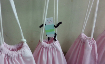 それぞれが作った「すきまちゃん」をいろいろな隙間に挟み、写真を撮りました。子どもたち一人一人にストーリーがあり、とても面白かったです。