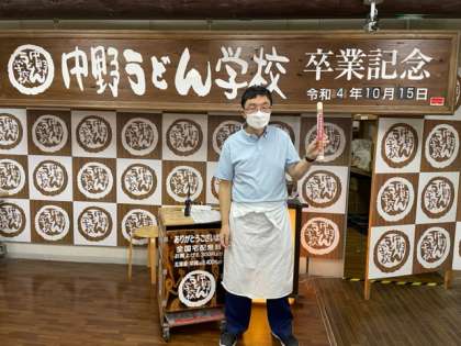 うどん作りのあと、子どもたち全員に、うどん学校卒業証書をいただきました。