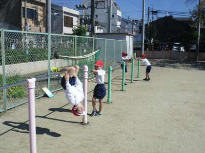 体育科では、てつぼうあそびの学習をしています。できる技を増やそうと、練習を頑張っています。休み時間に練習する姿も見られました。