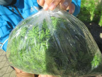 2回目でも、こんなにどっさりと間引き菜がとれました。(これと、あと二袋分とれました)