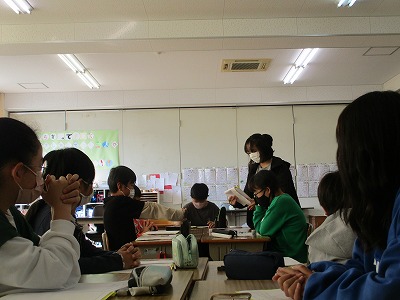 班ごとに分かれて、班のめあてが達成できたがを振り返るとともに、これからの学校生活に生かせることは何かを考え、発表しました。