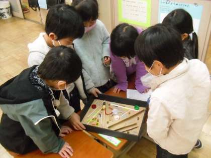 そして、2日(金)に、「秋のあそびフェスティバル2022 in 朱三」というテーマで交流しました。それぞれが作ったおもちゃを楽しそうに遊びあっていました。
