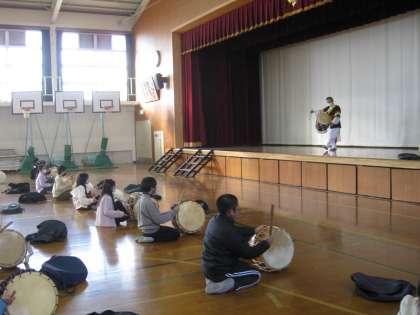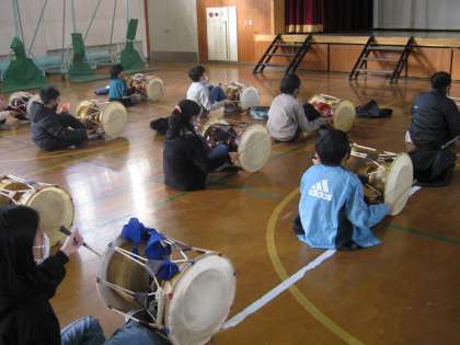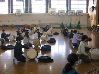 チャンゴは雨の音、プクは雲とそれぞれの楽器にはイメージした音があり、そのイメージと本当の音が一致しているかを確かめながら楽器演奏を楽しみました。