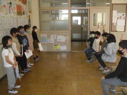 3年生が「すがたをかえる大豆」から学んだことを発表してくれました。発表の後には、質問したりクイズに答えたりしながら、しっかりと発表する3年生の発表を楽しんで聞いていました。