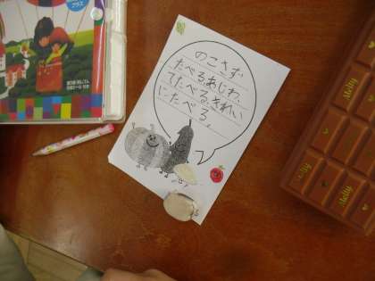 先週は、給食週間でした。先週月曜日に、給食目標を書きました。「残さず食べたいです。」「感謝の気持ちを込めて食べたいです。」などと、それぞれの目標を立てることができました。