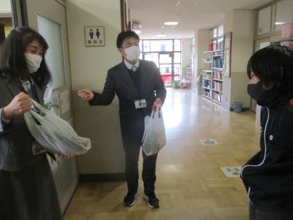 卒業を前に、お世話になった先生方に感謝の気持ちを伝えよう、ということで、にんじんをおすそ分けをすることにしました。