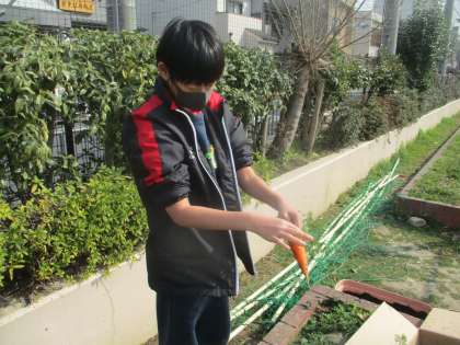 巨大人参畑計画では、土を耕し土を作り、種を蒔いて根気強く世話をしていました。最後は収穫して自分で調理し、食べておなかの中に入って、あたたかい気持ちになったんじゃないかな、と思います。これだけ頑張っていたのだから、これから先も粘り強く頑張れますよ。この学習を通して学んだことを、たくさん生かしてほしいです。