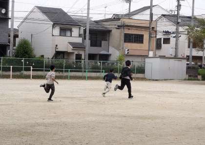 校庭の様子をふと見ると、かけっこをして遊ぶ子たちの様子が。