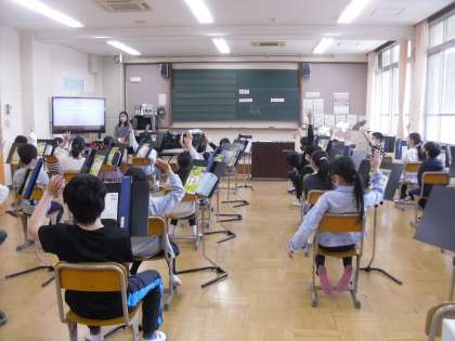 ピアノの音を聞きながら、集中して学習に臨む5年生の姿が素晴らしかったです。