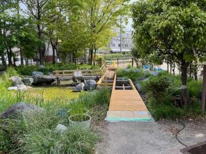 早くこのビオトープに自然が戻るよう、引き続き整備をしていきます。子どもたちがここで生き物を観察している姿を想像すると、ワクワクします!