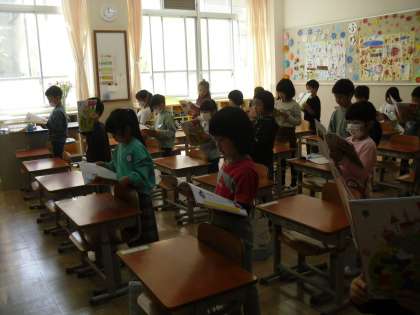 音楽の学習では、友だちと一緒に声を合わせて歌ったり、リズムに合わせて身体を動かしたりしていきます。この前の学習では、「犬のおまわりさん」や「ちょうちょう」など、色々な歌を楽しんで歌うことができました。