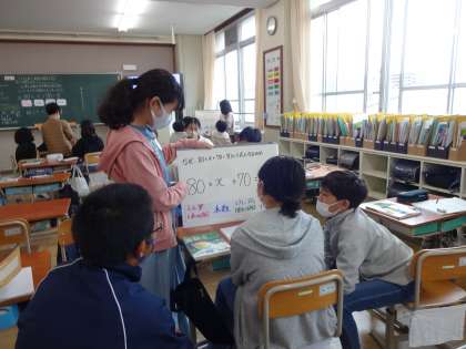 2時間目の6年1組は、社会科「私たちの生活と政治」の学習をしていました。5時間目の6年2組は、算数科「文字と式」の学習をしていました。