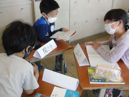 国語では、話の意図を考えて聞き合い、「きくこと」について考える学習を進めています。