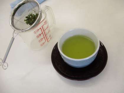 「いつも飲んでいるお茶より苦い」や「色が黄緑色できれいだね」など、普段飲むお茶と比べて発言する様子もありました。