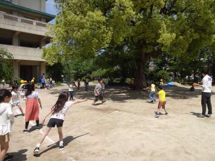 中間休みには、京都市教育委員会が全市の小学校に呼び掛けてみんなでチャレンジする「スポチャレ」の今回の種目、「ギャロップリレー」に3年生が取り組んでいました!