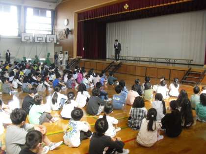 今日はくすのき集会(人権集会)を行いました。児童会の子たちが司会を行い、「自分も他人(ひと)も大切に」という本校の人権目標を確認しました。校長先生からは「基本的人権」についてお話がありました。