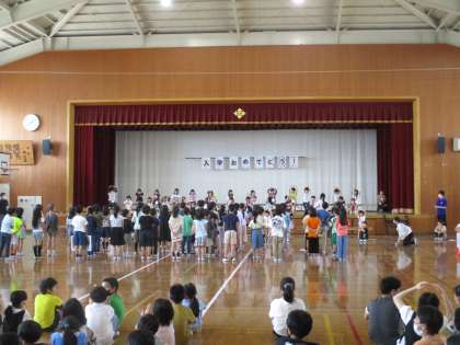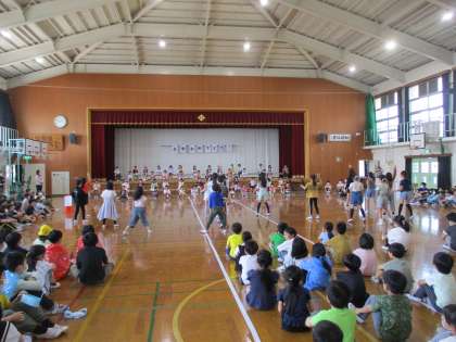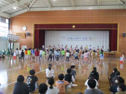 1年生の入学をお祝いをして各学年がクイズや歌、劇、ダンスなどの出し物をしました。