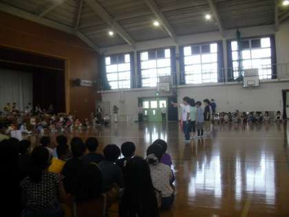5月16日(火)に「1年生をむかえる会」がありました。内容を決めるときに4年生から出た意見は、「劇」「クイズ」「ダンス」「メッセージ」でした。今回は、その4年生の意見を全部盛り込んだ内容で1年生の入学をお祝いしました。自分たちで考えたクイズやせりふ、ダンスの振付けなど、子どもたちが主体的に取り組んだ内容でした。